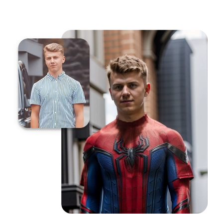 Easily create a comic style effect by turning your photo into the Spider Man Costume with AI. This feature allows you to add realistic Spider Man elements, making your photo stand out with a unique, artistic flair.